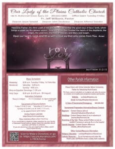 Thurs. Dec. 25th 9:00 AM Christmas Mass – No confessions beforehand